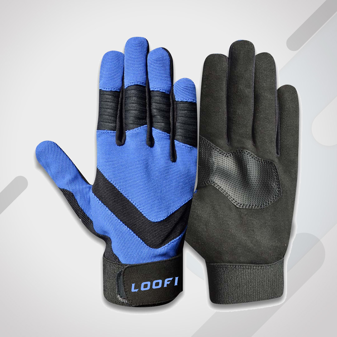 Cycling Glove Full Finger. Palm Side Synthetic Leather with Digital Sareeno Reinforcement. Back Side Fourway, Neoprene. Elasticated Wrist. Hook and loop Closure.