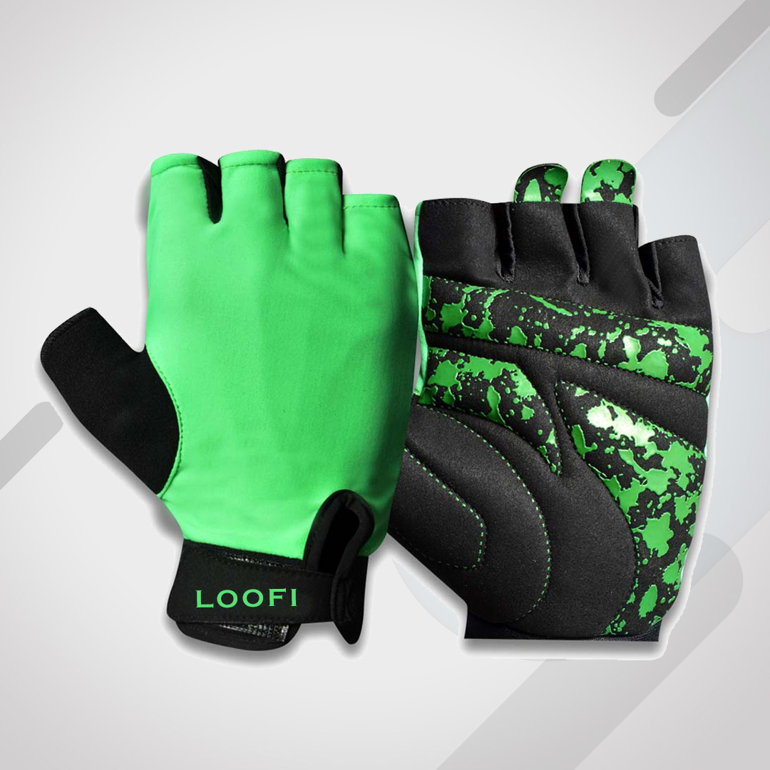 Cycling Glove Cut Finger. Palm Side Synthetic Leather with silicon, Inside foam padding. Back side Lycra. Towel on thumb. Neoprene on Wrist. Puller on fingers. Hook and Loop closure.