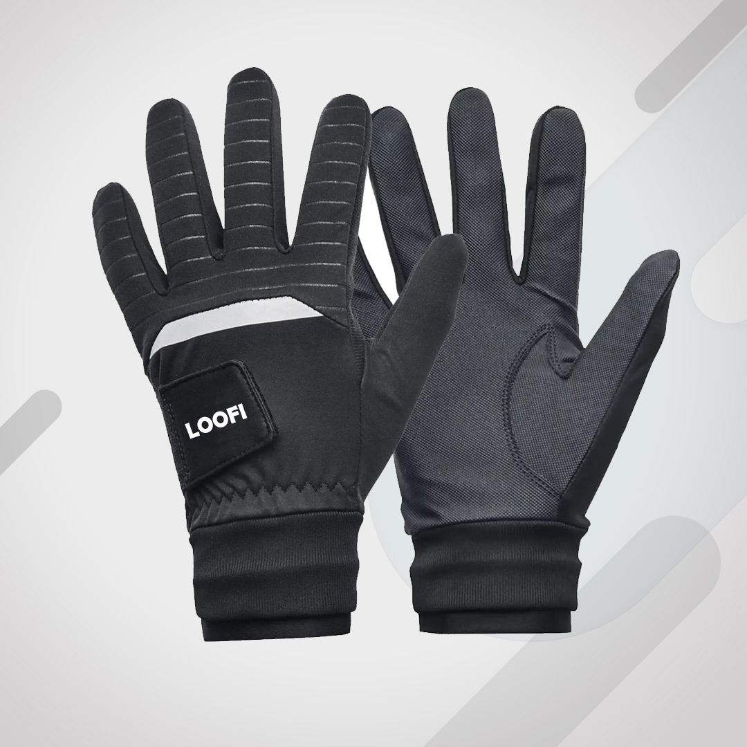 Back Side Fourway grey and black and foam padding on knuckle area. Neoprene on wrist. Reflector tape. Hook and Loop Closure. Glover Puller.