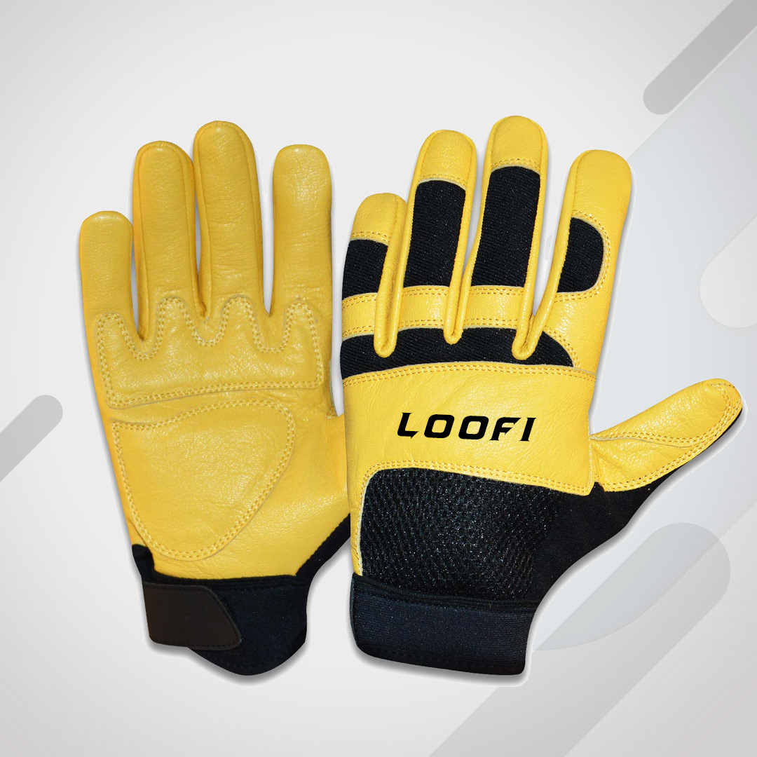 Mechanic Glove. Palm side Goatskin Leather with goatskin leather reinforcement. Back side goatskin leather, Fourway and Mesh, Towel on Thumb. Neoprene on wrist. Playboy with foam lamination. Elastic on wrist. Hook and Loop Closure