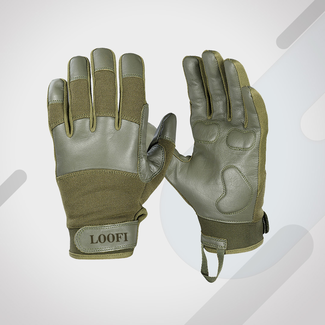 Tactical gloves for policemen, security service employees, and shooters. Made of natural leather and synthetic materials. The inner non-slip layer and inserts improve the comfort of holding the gun. Color: Olive Drab.