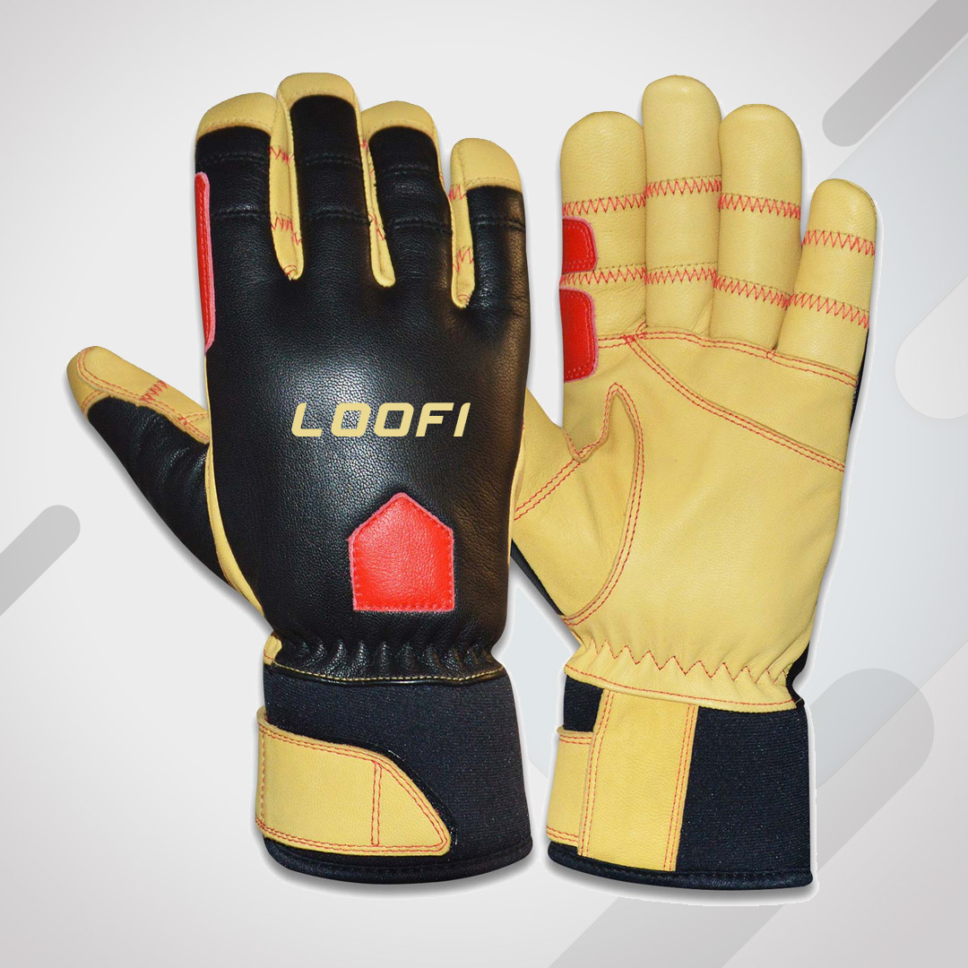 Ski Glove. Made of Goatskin leather (Yellow and Black) Hook with Loop closure with long Neoprene. Inside Shankar with foam lamination
